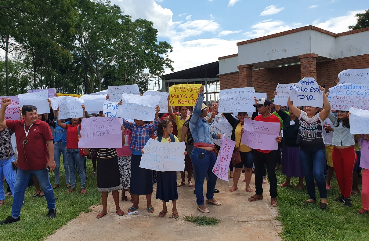 Los ciudadanos indignados se manifestaron ayer frente al local municipal apoyando el pedido de intervención realizado por la Junta Municipal al Ministerio del Interior el 6 de diciembre de este año. Repudiaron la actitud del jefe comunal, que en todo momento manejó la administración a su manera pagando millones de guaraníes por obras inexistentes o mal ejecutadas. La junta rechazó la ejecución presupuestaria del segundo cuatrimestre y elevó el pedido de intervención con documentos respecto a la ejecución presupuestaria de este año.