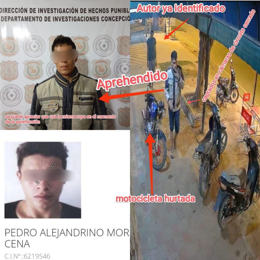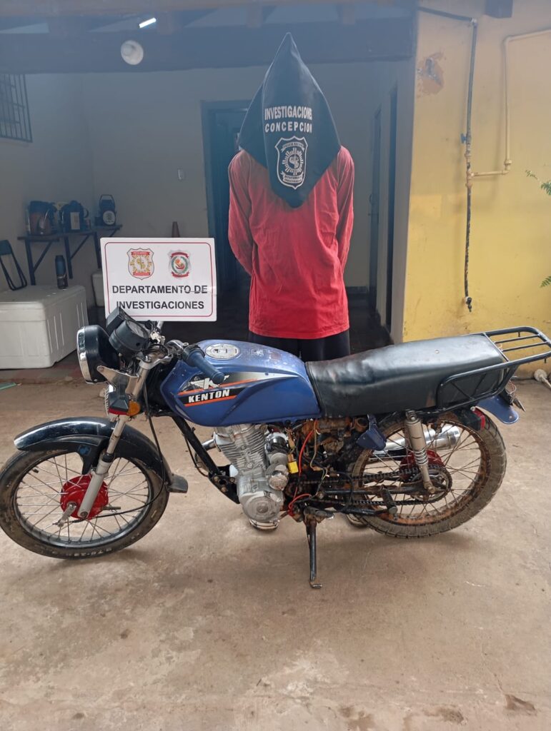 En un operativo realizado este jueves 12, a las 12:50 horas, la Dirección General de Investigación Criminal, a través del Departamento de Investigaciones de Concepción, logró la aprehensión de Álvaro Tobias Saracho Benítez, de 24 años, y la recuperación de una motocicleta denunciada como robada. El procedimiento tuvo lugar en la vía pública de la ciudad de Belén, cerca del puente que une dicha localidad con el Departamento de San Pedro.