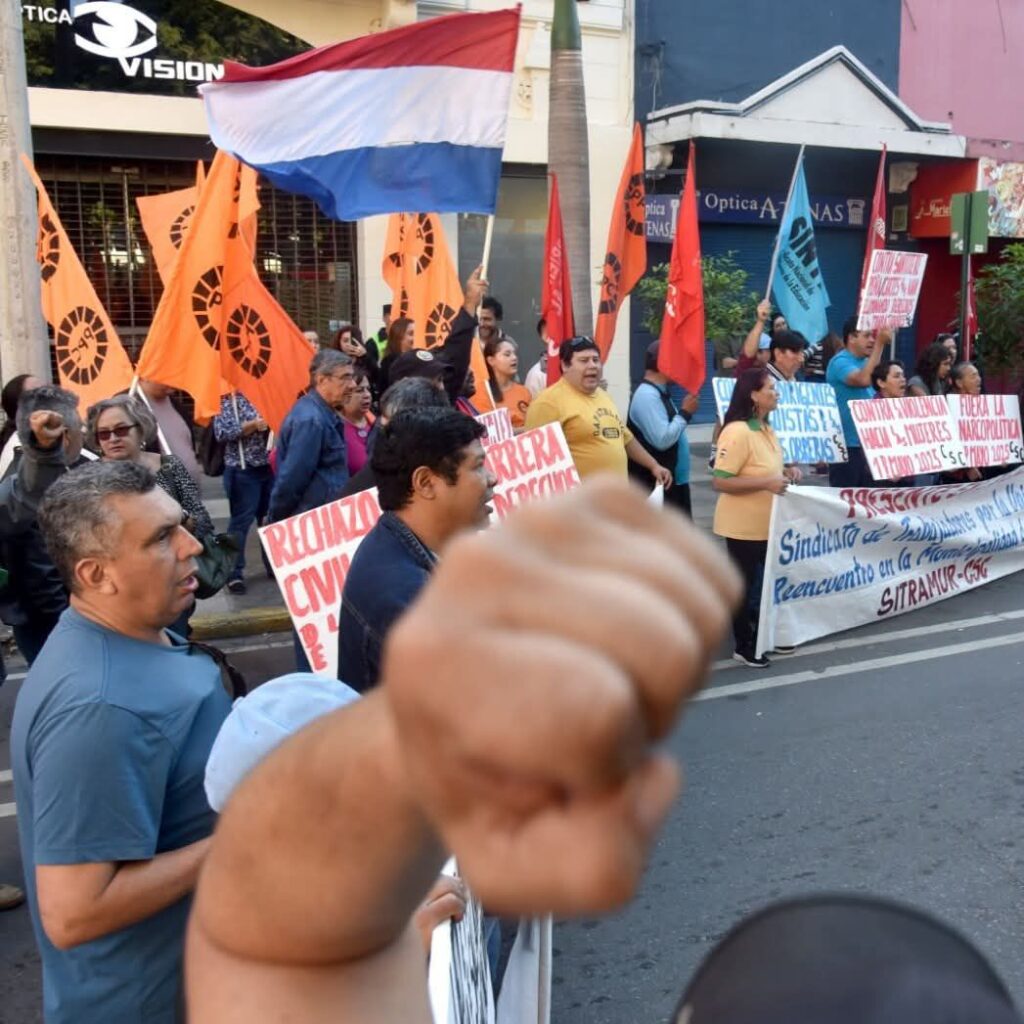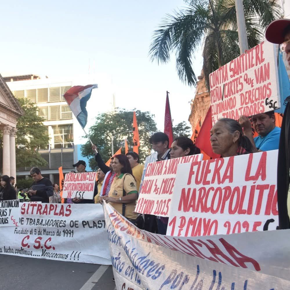 Los trabajadores aglutinados en varias centrales obreras se manifestaron por las calles de Asunción, denunciando el retroceso de los derechos laborales. Reprocharon a Santiago Peña y lo calificaron de ser un presidente ausente.