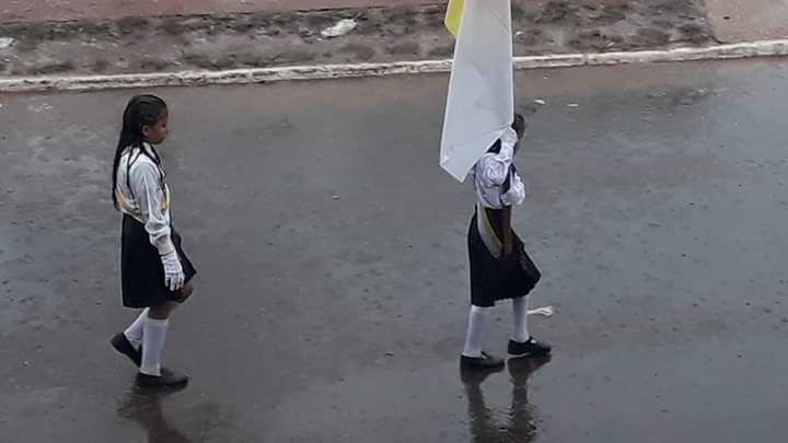 Bajo una copiosa lluvia se desarrola el desfile estudiantil, civil y militar en homenaje a la ciudad de Concepción por sus 245 años de fundación.