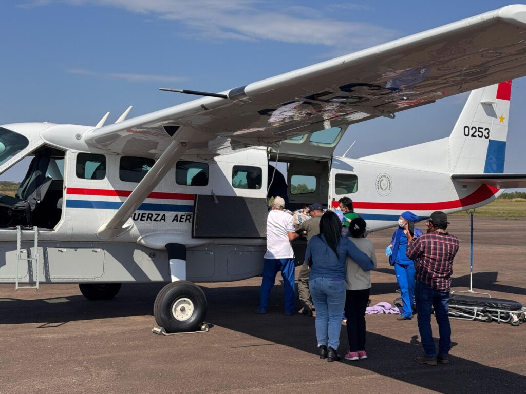 El suboficial inspector Cecilio Enriquez Vega, herido de gravedad en el enfrentamiento de este miércoles en Cerro Memby, Yby Yaú, fue evacuado en un avión de la Fuerza Aérea desde Concepción hasta el Hospital Rigoberto Caballero en Asunción.
