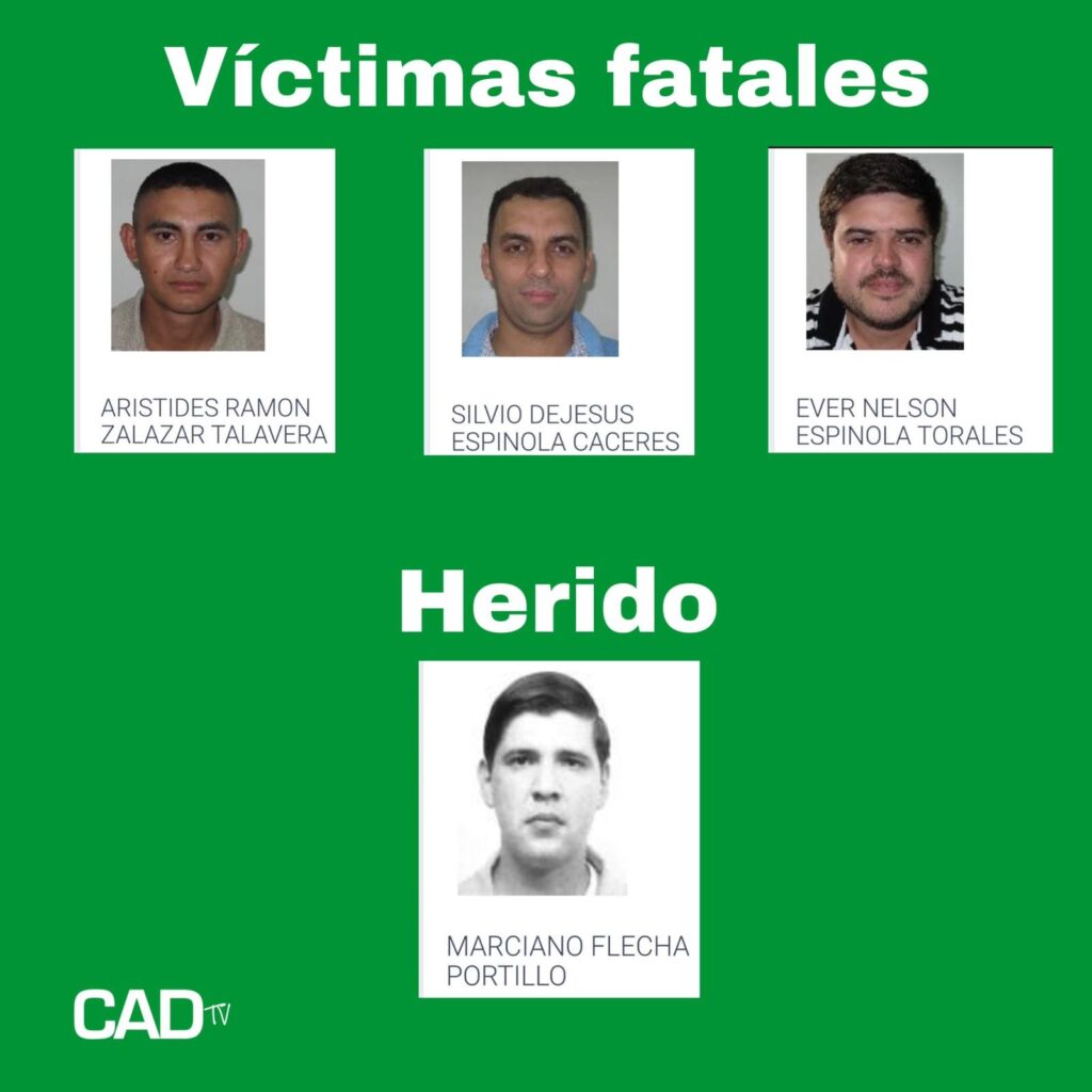 Resultaron víctimas fatales; Ever Nelson Espinola Torales, sub jefe del departamento antinarcótico de la policía de Concepción, Sub oficial mayor Silvio de Jesús Espinola Cáceres y el suboficial primero Arístides Ramón Zalazar. En tanto resultó herido sub oficial Mariano Flecha Portillo, todos eran del mencionado departamento policial.