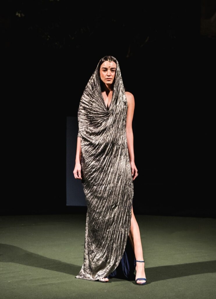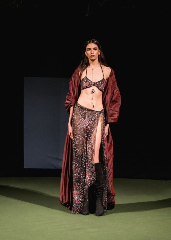 Con más de una década de trayectoria y formación en el Istituto Marangoni, la diseñadora ha llevado su trabajo a plataformas como New York, Londres, Dubái y París, posicionando su sello dentro del circuito global. Su propuesta se distingue por una mirada contemporánea sobre la identidad, donde cada colección es también un relato cultural.