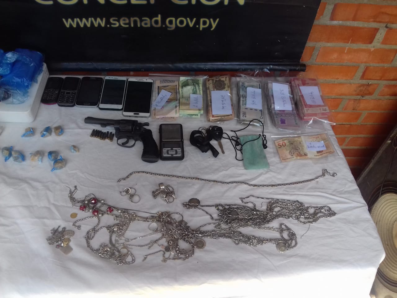 También fueron incautados como evidencia varios billetes de baja denominacion, armas, celulares y un automóvil toyota modelo Axio de color blanco.