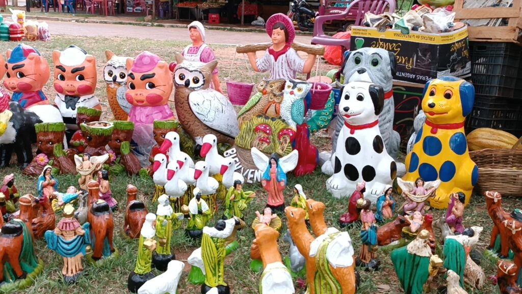 El paseo central de la Avenida Eligio Ayala, en Concepción, se ha llenado de color gracias a la presencia de vendedores de Areguá, quienes ofrecen una variedad de pesebres y decoraciones navideñas elaboradas artesanalmente. Entre los productos destacados se encuentran adornos para el hogar, planteras, la emblemática imagen de la Virgen de Caacupé, y pequeñas casitas para pesebres y jardines, disponibles en diferentes tamaños.