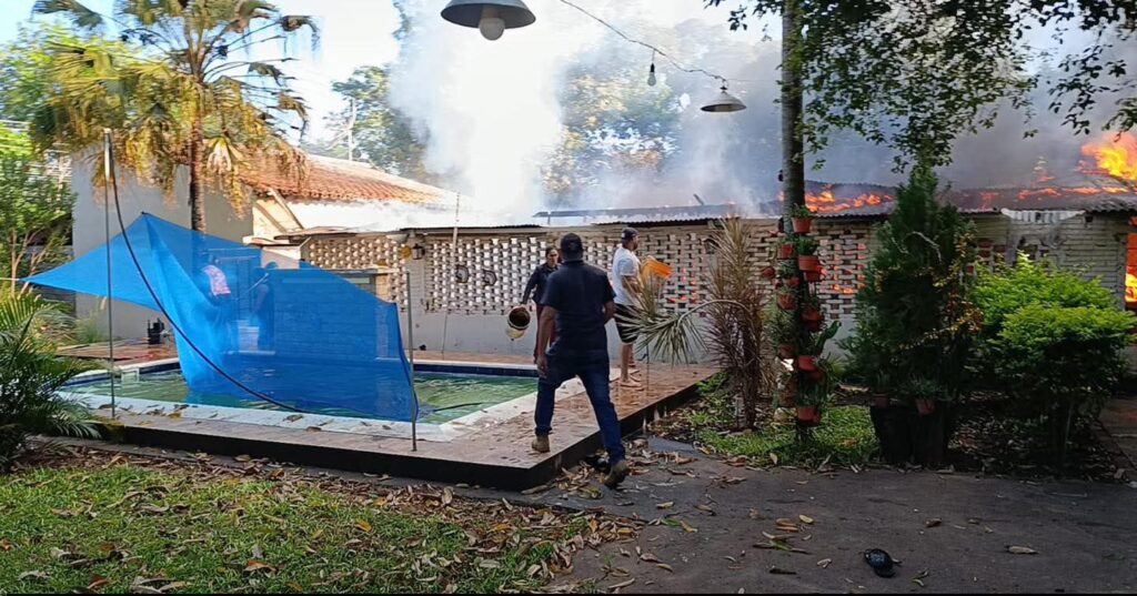 De acuerdo con las primeras informaciones, la persona encargada del cuidado del inmueble se encontraba realizando tareas domésticas en el patio cuando advirtió la presencia de un espeso humo negro que salía desde el interior de la vivienda. Al intentar verificar lo ocurrido, constató que las llamas ya se habían propagado con rapidez, por lo que salió a solicitar ayuda de manera urgente.