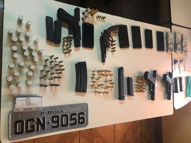 Se han incautado armas, balas y cargadores de armas largas, además de dinero en efectivo y celulares. Además, ya hay tres personas detenidas en la Comisaría 7 de Yby Yaú.
